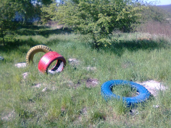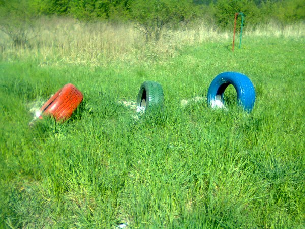 A takto vyzerajú pneumatiky, ktoré sme osadili pri futbalovom ihrisku v rámci Dní dobrovoľníctva: