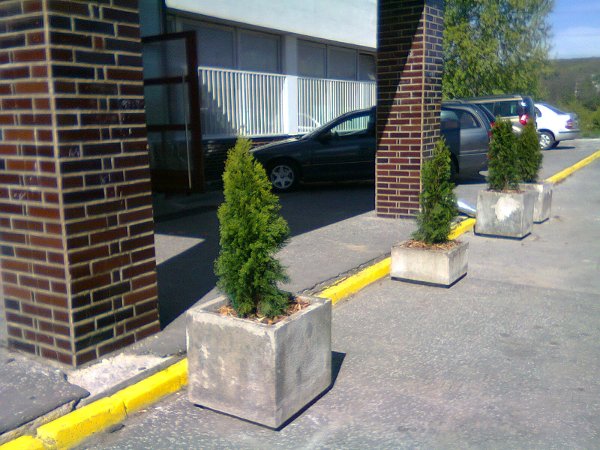 Novej zelene sa dočkali aj kvetináče v okolí parkoviiska.