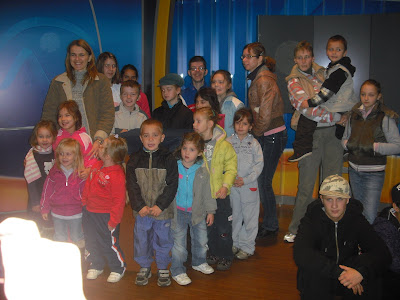 Sobota 9:00 plánované strekto pred ubytovňou, kopa ľudí, autobus pristavený, ale našej Danky nikde. Našťastie nemeškala dlho. :-D Trvalo to menej ako 15 minúť a autobus mohol vyraziť. Prvou našou zastávkou bola už spomínaná TV Markíza v Záhorskej Bystrici. Tu sme si mohli prezrieť štúdiá Telerána, a neskôr jedno veľké štúdio Televíznych novín, Športových novín a Reflexu (spravodajské štúdio), a samozrejme že technicky riaditeľ nám dovolil nazrieť aj do réžie, strižne.... Po prehliadke útrob televízie sme sa presunuli na vonkajšie priestranstvo. Takmer každého hneď upútalo jazierko s rybami, ale keďže bolo chladno na kúpanie, tak sa dali len ryby obdivovať, a samozrejme aj priľahlý kvetinový kútik.