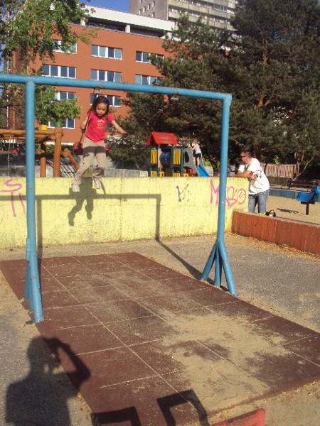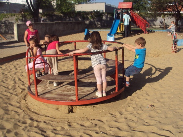 Štvrtok 10. mája 2012 sme naše klubové priestory na jeden deň zamenili za neďaleké ihrisko. Vonku vládlo príjemné letné počasie, tak prečo to nevyužiť. Po príchode na ihrisko sa naše deti rýchlo rozpŕchli na hojdačky, či kolotoč na ktorých sa mohli vyblázniť do sýtosti. Niet sa čo čudovať, veď kde inde ak nie na ihrisku si môžu deti vybiť svoju energiu.
